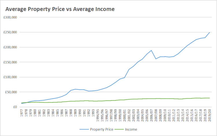 This will come as no surprise to those living either in rented accommodation or with parents, scraping together enough money for a deposit on their first house (an average deposit being £57,278 across the UK, by the way, and an eye-watering £130,357 in Greater London). For them, the gap between income and house prices has been widening almost every year in living memory.