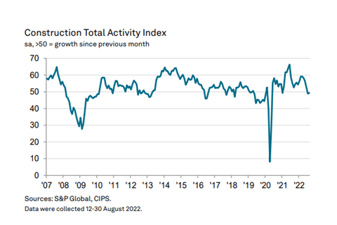 Recording an index reading of 49.2 in August – higher than 48.9 recorded in July but still below the 50.0 no-change mark, indicating a reduction in activity over the month – the survey found that the housing sector was the only part of construction not to see a drop in activity.