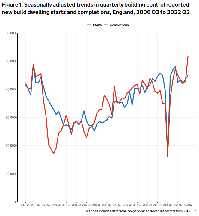 According to the figures, 51,730 homes were started in the second quarter of the year, up by 15% on the same quarter in 2021.