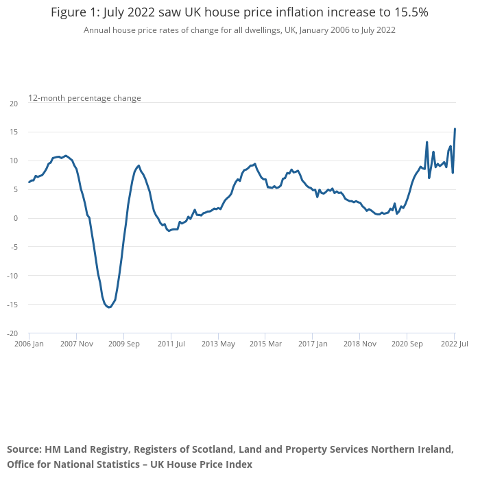 The average house price in July increased by 15.5% over the year; a jump from 7.8% in June, mainly because of the falls in prices seen this time last year as a result of changes in the stamp duty holiday.