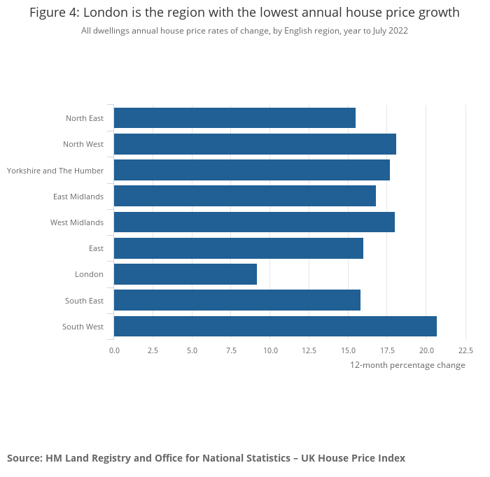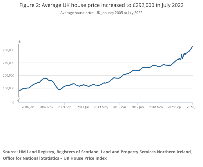 The overall average house price was £292,000 in July 2022, says ONS, an increase of £39,000 from this time last year.