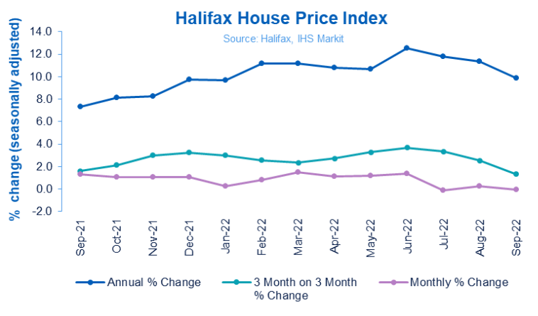Halifax have published their house price index for September, revealing that annual house price growth has fallen from 11.4% in August to 9.9% in September.
