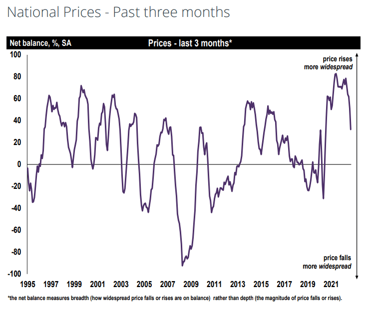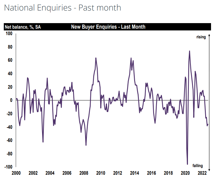 Going forward, twelve-month price expectations have now turned negative, with respondents citing the expected further substantial rises in mortgage rates as a factor putting pressure on the market over the year ahead.