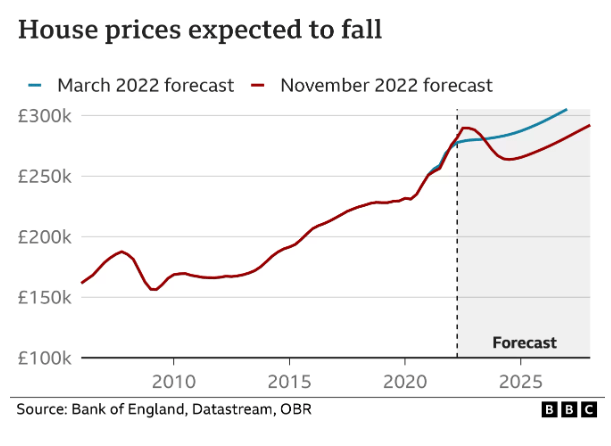 In their November 2022 Economic and Fiscal Outlook, the OBR reported an expected increase in property value of 10.7% in 2022, followed by two years of falls, with house prices down by 1.2% in 2023 and 5.7% in 2024.