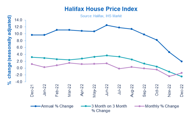 Nationwide and Halifax have both published their house price index for December 2022, revealing a sharp fall in annual house price growth at the end of the year.