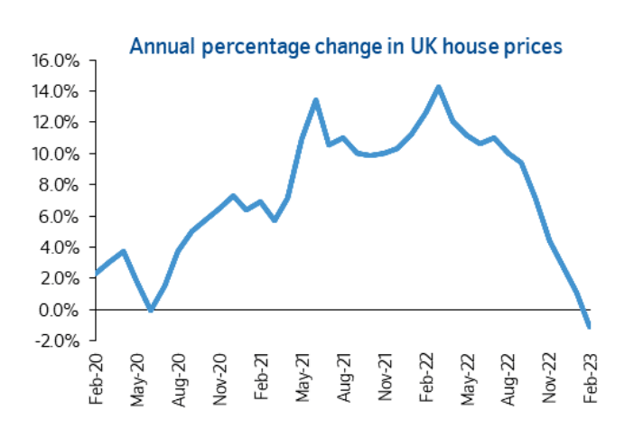 The latest house price index from Nationwide has revealed a decline in annual house prices in February for the first time since June 2020.