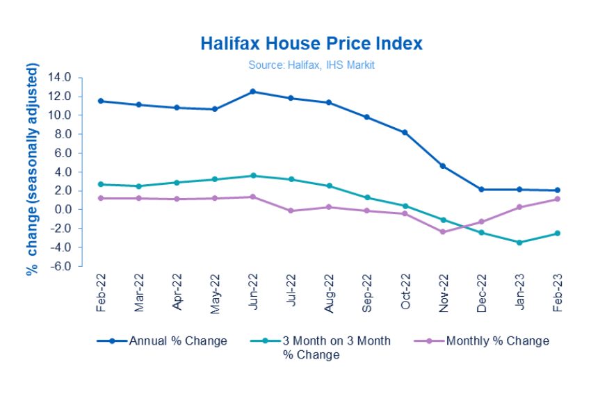 Halifax have published their house price index for February, reporting a 1.1% increase in property values in the month.