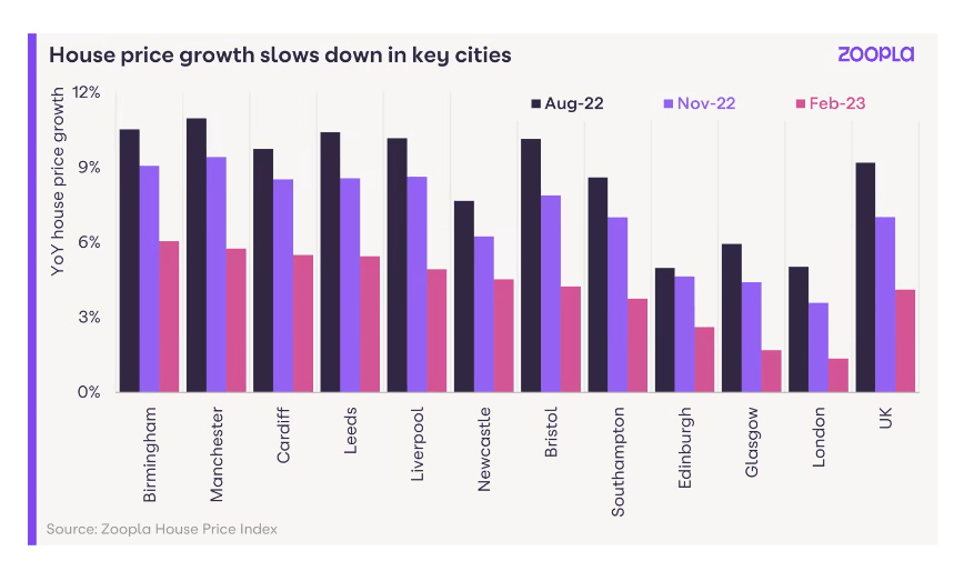 The firm has also reported a slowdown in annual house price growth to 4.1% from 9% in March 2022, with property values -1% lower than in October 2022.