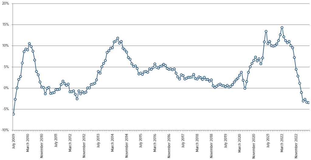 The fall represents the weakest rate of annual house price growth since July 2009.