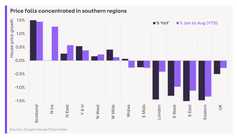 Meanwhile, Zoopla have recorded annual house prices moving to -0.5% in September, with demand rebounding as market sentiment improves.