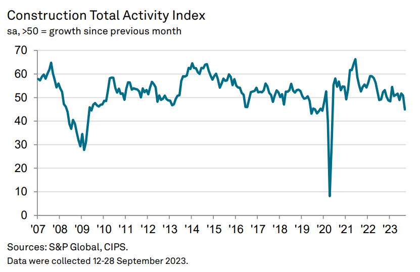 The overall index registered 45.0 in September (Aug: 50.8). Any reading below 50.0 represents a decline in output.