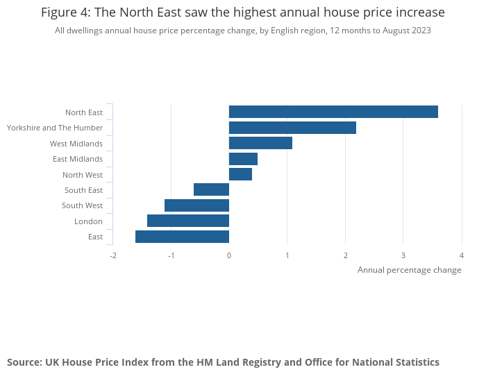 The Office for National Statistics also revealed that the North East region saw the highest annual house price increase at 3.6%, with the East experiencing the greatest fall, at -1.6%.