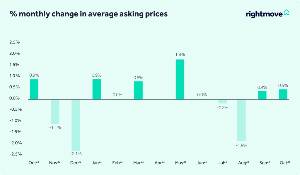 Rightmove has published its house price index for October, revealing that the average asking price increased in the month by 0.5%; the lowest average asking price increase at this time of year since 2008.