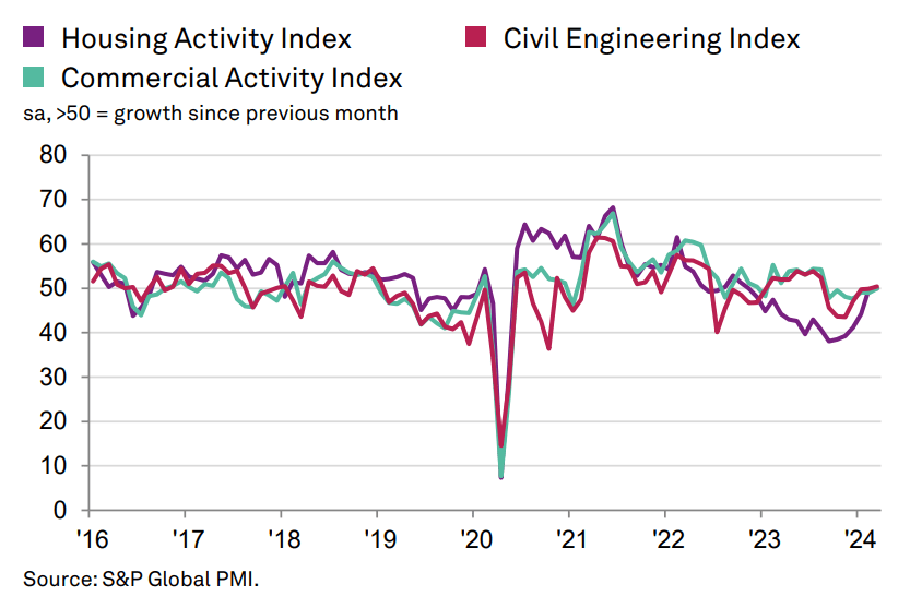 Residential work remained broadly unchanged in March, with this stabilisation representing the best performance for this category since November 2022.