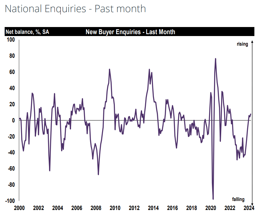 The RICS UK Residential Market Survey for March has posted a net score of +8% for new buyer enquiries in the month – the most positive result since February 2022.