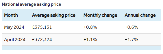 Housing website Rightmove has reported a 0.8% increase in property prices in May, bringing the average value in Great Britain to just above £375,000 – a new record.