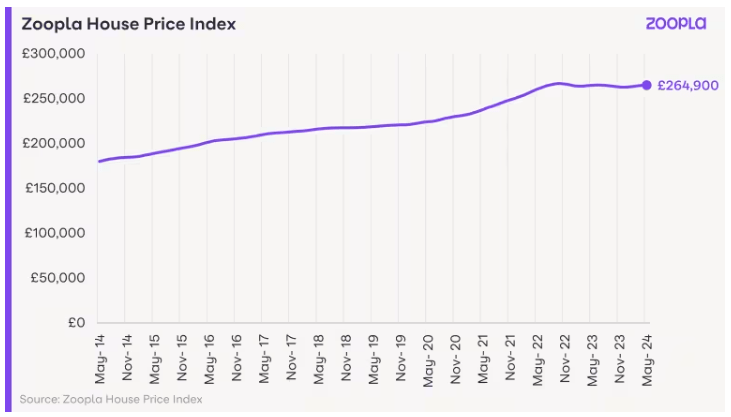 The latest Zoopla house price index has revealed that house prices remained stable in May, with the average UK property valued at £264,900.