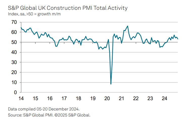 The latest monthly Purchasing Managers’ Index from S&P Global has revealed construction activity in December 2024 growing at the slowest pace since last June.