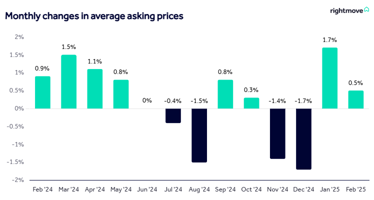 February’s house price index from property firm Rightmove has found that the average price of property coming to market for sale has risen by 0.5% in the month to £367,994, as sellers lower price expectations ahead of the stamp duty deadline.