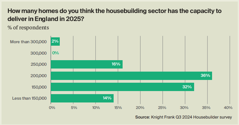 The survey of around fifty SME and large housebuilders also revealed that just a third of respondents believed that the housing sector could deliver 200,000 units this year, with 14% predicting that fewer than 150,000 homes would be built in 2025.