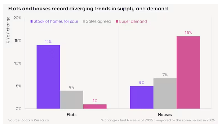 The report also noted that the value of houses has increased by 24% over the last five years; three times faster than the value of flats, which have seen 7% growth.