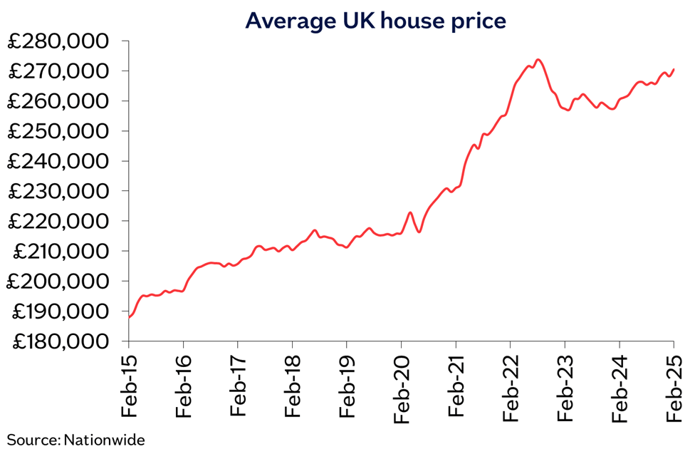 Mortgage lender Nationwide reported a 3.9% growth in house prices over the year (Jan: 4.1%), with a monthly increase of 0.4% bringing the average property value to £270,493.