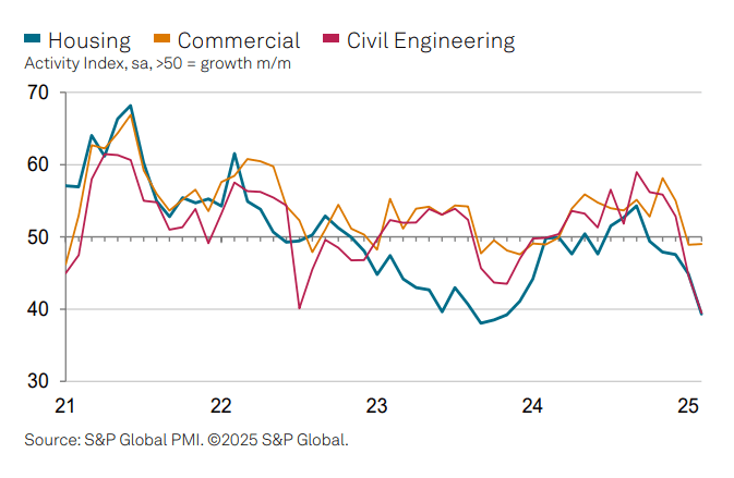 Survey respondents cited weak demand, elevated borrowing costs and a lack of new work as the key drivers.