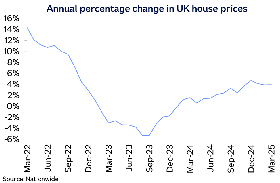 The latest house price index from Nationwide reflects on a stable housing market, with the annual rate of property value growth remaining at 3.9%, unchanged from February.