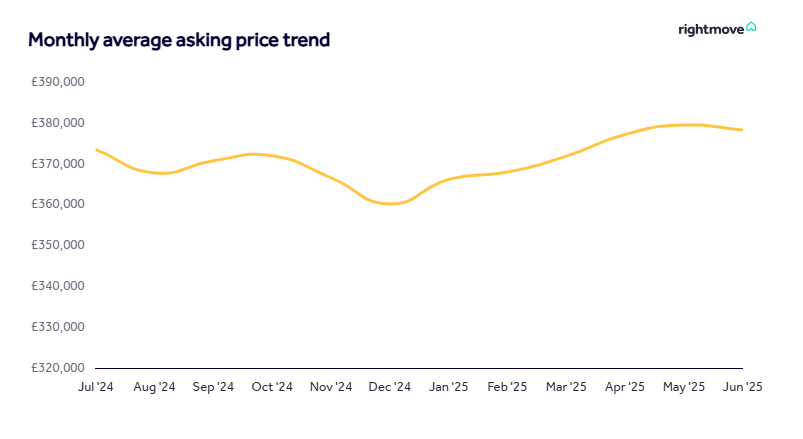 Rightmove has published its latest house price index for June, revealing that asking prices have fallen by -0.3% in the month to £378,240.