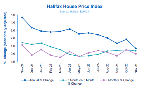 The latest UK house price index from Halifax has revealed a steady month in November, with values unchanged from the previous month.