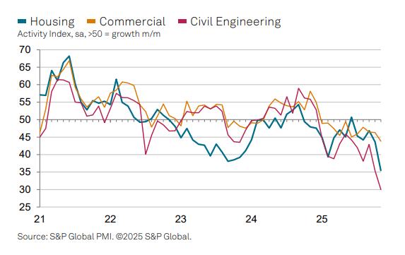 The S&P Global Construction PMI has revealed that all three construction sub-sectors saw the greatest fall in activity in November since May 2020.