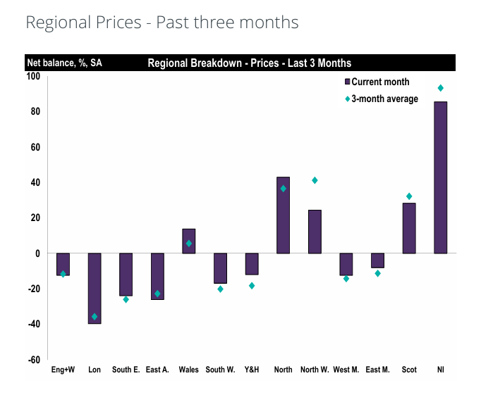 House prices were described as broadly flat to slightly negative nationally, with the headline balance at -12%. However, the twelve-month outlook stayed positive overall, at 17%.
